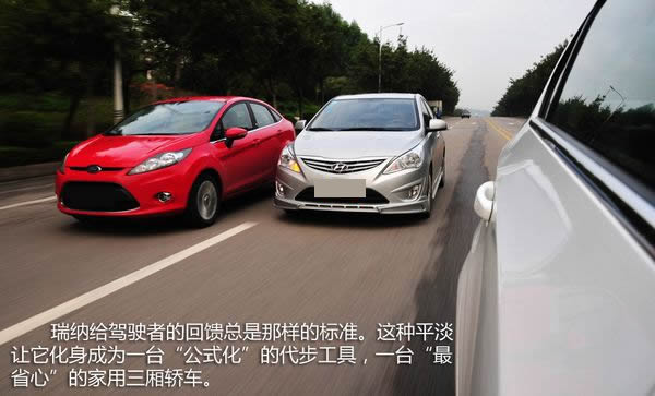 這是我們所樂(lè)意看到的局面,同樣奪目的外表下三臺(tái)車有著各異的駕控特性。韓系車型常見(jiàn)的均衡與中庸在瑞納身上顯露無(wú)遺,方向盤不輕不重、懸掛不軟不硬,一切都簡(jiǎn)單自然得就像你打開(kāi)自己家里的冰箱門,拿出一罐可樂(lè)然后擰開(kāi)塑料瓶蓋往口里面倒,你不需要思考每一個(gè)動(dòng)作需要多少力度與幅度,反正瑞納給你的回饋都是那樣的標(biāo)準(zhǔn)。這種平淡讓它化身成為一臺(tái)“公式化”的代步工具,一臺(tái)“最省心”的家用三廂轎車。你不需要擔(dān)心路面的坑洼會(huì)引起乘客抱怨,也不需要因?yàn)楦咚俾飞系囊魂噦?cè)風(fēng)而心跳加速,瑞納會(huì)兢兢業(yè)業(yè)把你安全地從A地送往B地,當(dāng)然它更不會(huì)挑起你快速攻彎的欲望。