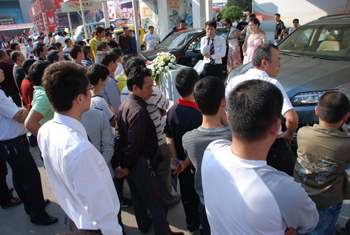 一汽奧迪展位前的講解很有吸引力,把眾多觀眾吸引過來。