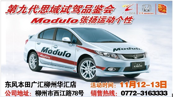 編輯從柳州東本華匯4S店收到消息,該店將在11月12日—13日舉辦第九代思域—Modulo試駕品鑒會,活動地點位于柳州西江路78號東本華匯4S店內(nèi),咨詢電話:0772-3163333 3161128。