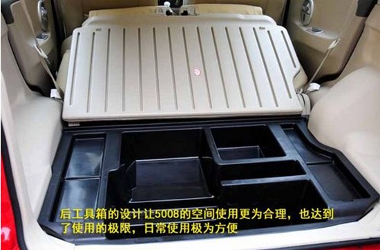 另外,比較有意思的是眾泰5008尾部特設了后工具箱,可將一些小工具、小物品擺放整齊。