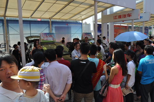 在眾多參展品牌當中,江淮汽車離主舞臺最近,瑞鷹、瑞風、同悅、和悅依次排開,精美的展具,整潔的環(huán)境,閃亮的五星車標,這一切都在告訴我們——江淮汽車已經(jīng)為西部名城汽車巡展做好了一切準備。