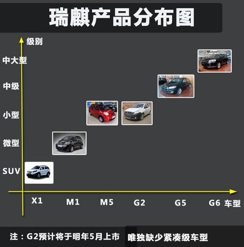 奇瑞的子品牌瑞麒旗下上市的車型多達5款之多,其中X1屬于小型SUV級別,而M1和M5則分別定位在微型車和小型車范疇,而這次廣州車展有可能亮相的G2定位高于M5,預計售價6萬元起售,預計將于明年5月上市發(fā)售。除此之外,瑞麒家族的中級車G5和G6分別承擔著旗艦車型的重任。通過瑞麒家族車系分析,唯獨缺少緊湊級車型。根據(jù)G6和G5的價格區(qū)間(G5最低到9.98萬)來判斷,該款產(chǎn)品預 計價格在7~10萬元。