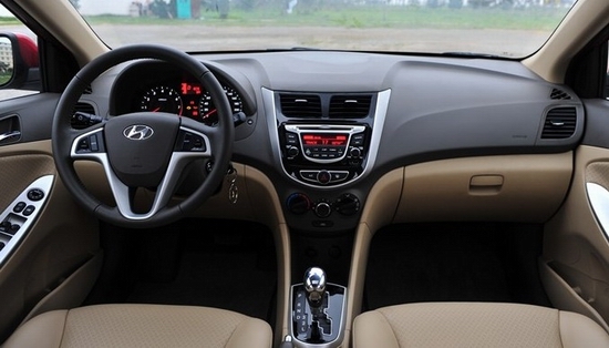 瑞納的內(nèi)飾線條十分豐富,這無疑提升了整體的層次感,自發(fā)光形式的儀表盤簡(jiǎn)潔大方,多功能行車電腦可以提供日常所需的信息。中控臺(tái)采用U字形設(shè)計(jì),配以黑色鋼琴烤漆,顯得很有品位。還記得i30那晃眼的藍(lán)色屏幕背景光么,在瑞納上變成了暗紅色,看起來柔和多了,并且提高了整體檔次。 不過瑞納幾款車型的配置區(qū)別不大,無論是手動(dòng)還是自動(dòng)擋,基本的舒適型(GS)配置與本文之前提到的自主車型相比有些低。