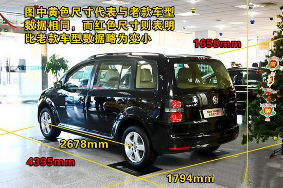 新款途安在尺寸方面有所變化,但都不是什么重要性的變化,僅是為了迎合新款設(shè)計(jì)而在尺寸上進(jìn)行微調(diào)。車身長度從4411mm縮短到4395mm,縮小16mm,而車高則從1670mm變?yōu)?658mm,減小12mm。但從視覺上并不會(huì)覺察到其有何變化。