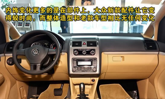 進(jìn)入車內(nèi),依舊熟悉的內(nèi)飾設(shè)計(jì)造型讓我很容易找到老款途安的影子。在使用大量新款內(nèi)飾設(shè)計(jì)部件后,確實(shí)讓它看起來漂亮些,和新款設(shè)計(jì)融合的更好些。扎實(shí)的做工依舊能讓人感受到大眾的魅力所在。