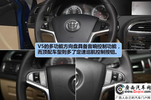 當(dāng)然中華V5也不缺乏電動(dòng)天窗、真皮座椅這些常規(guī)功能,另外還擁有無鑰匙啟動(dòng)、定速巡航這些更為舒適的配備。安全方面則是中華V5擁有更多優(yōu)勢,車身穩(wěn)定系統(tǒng)、上坡輔助以及胎壓報(bào)警這些為其加分不少。