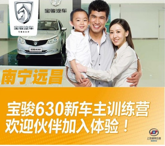 尊敬的寶駿車主:感謝您選用寶駿630!我們將于2011年11月26日上午10點(diǎn)30分,在南寧遠(yuǎn)昌寶駿4S店舉行“車主訓(xùn)練營(yíng)”活動(dòng),屆時(shí)將有針對(duì)新購(gòu)車主的專業(yè)汽車駕駛/維護(hù)/保養(yǎng)知識(shí)講座,及有趣的汽車競(jìng)技游戲,幫助您更好用車,享受有車生活。我們誠(chéng)邀您的光臨!凡到店參與寶駿630新車主訓(xùn)練營(yíng)的車主,均可獲得價(jià)值200元/車的電話卡關(guān)懷禮品!并將參與三年六萬(wàn)公里免費(fèi)保養(yǎng)抽獎(jiǎng)活動(dòng),更有千元驚喜大禮等著您!
