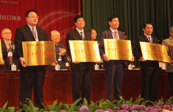 眾泰汽車董事長吳建中上臺接受院士專家工作站授牌
