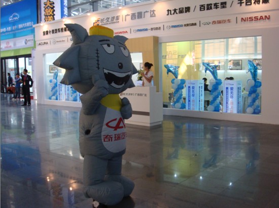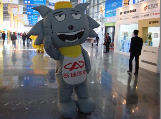 想到剛剛那個灰太狼,突然間我腦海閃過一個詞“美女與野獸”,哈哈,都齊聚在奇瑞汽車這里了,真有意思