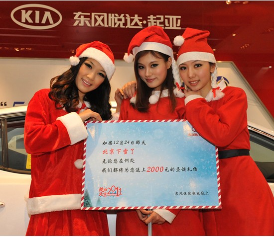 “叮叮當(dāng),叮叮當(dāng),鈴兒響叮當(dāng),白色圣誕購起亞,瑞雪送祝福啦!……”2011年12月1日至20日期間,東風(fēng)悅達(dá)起亞傾情推出“純白北京2011”活動。只要圣誕期間北京普降瑞雪,東風(fēng)悅達(dá)起亞將成為您的“圣誕老人”,為您帶來價值2,000元現(xiàn)金的圣誕大禮!