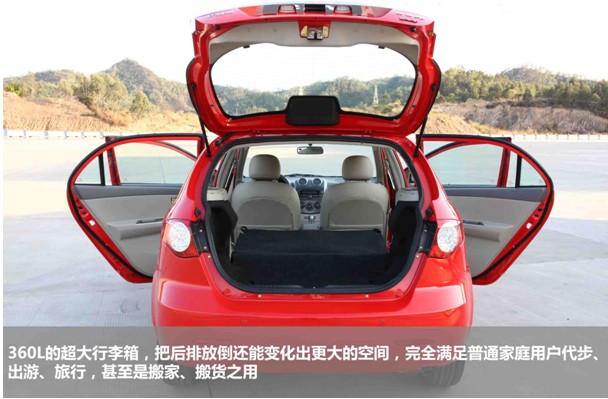 作為一款偏重家庭用戶的兩廂車,G3R極力營造空間的舒適感,因此,雖是兩廂車,G3R的乘坐空間卻足以確保乘坐者的寬敞舒適。數(shù)據(jù)顯示,其外觀尺寸為4380mm×1705mm×1490mm,2600mm的長軸距即使在三廂中級車面前也毫不遜色,相比其他主流兩廂車更是“霸氣外露”,駕駛空間和后排空間十分充足。車型內(nèi)部,各類貼心的儲(chǔ)物格設(shè)計(jì)細(xì)節(jié)到位,風(fēng)格溫馨。加上360L的超大行李箱,將后排座椅放倒后空間更大,完全滿足普通家庭用戶代步、出游、旅行,甚至是搬家、搬貨之用,空間多樣性之優(yōu)勢展露無遺?傮w來看,G3R的內(nèi)部空間倒是有點(diǎn)出乎筆者的意料。