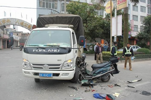 “不好了,撞車了,快救人!”2011年12月10日早上8點(diǎn)45分,玉林市區(qū)一環(huán)北路八運(yùn)公司路段,幾名路人大聲呼救,原來(lái)2分鐘前,一輛摩托車違反規(guī)定在汽車專用道上行駛,結(jié)果與一輛發(fā)生五十鈴貨車相撞,駕駛摩托車的才十多歲的男孩和車上2名小乘客全部倒在路面,情況十分危急。