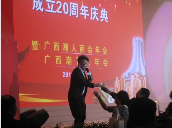 近日,編輯從海馬?凳昀吓频戢@悉。南寧海康與廣西潮人海外聯(lián)誼會于12月18日攜手聯(lián)歡共同慶賀潮人商會成立20周年慶典。此次潮人商會20周年慶之際,海馬?涤行已埖奖姸嘀枋值桥_獻唱并與在場觀眾進行互動,互動期間抽出了兩名幸運觀眾,這兩名非常幸運的朋友有幸獲得海馬海康免費送出的兩臺2011最新款海馬王子宜居型轎車!
