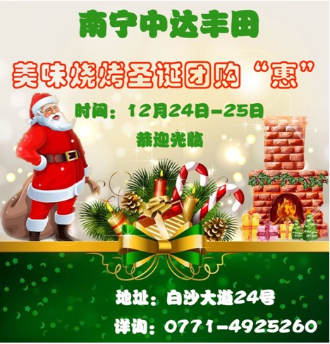 12月24-25日,南寧中達(dá)豐田邀您到店賞豐田車,品嘗烤全羊、全雞等火熱圣誕盛宴,更有年末觸底團購價格圓您春節(jié)用車夢,活動期間內(nèi)訂車參加趣味投籃還可贏取平板電腦、導(dǎo)航等驚喜大獎。南寧中達(dá)豐田,還有夜班哦。!