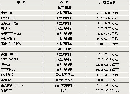 我們選取了時(shí)下熱門的15款個(gè)性可愛車型推薦給各個(gè)階層想在圣誕節(jié)期間想購車作為禮物送給家人的朋友,國產(chǎn)自主品牌還是以我們熟悉的車型為主,如:奇瑞QQ3、比亞迪F0、熊貓等,新上市不久的雪佛蘭-愛唯歐是一大亮點(diǎn)。進(jìn)口車型中,有多款全新的車型可供選擇,如:全新BMW 1系、奧迪A1、菲亞特500環(huán)保車型雷克薩斯CT200h等均能讓你眼前一亮,我們所熟悉的MINI COOPER與奔馳旗下的SMART也是不錯(cuò)的選擇,全新引進(jìn)的標(biāo)致RCZ跑車也能愿您家人的跑車夢(mèng)。