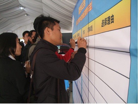 政策看板揭曉后,在場賓客紛紛到“訂車榜”前留下自己的名字