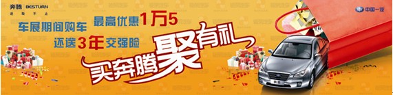 與此同時(shí),車(chē)展期間,奔騰B50最高優(yōu)惠1萬(wàn)元,奔騰B70最高優(yōu)惠1.5萬(wàn)元。優(yōu)惠僅限車(chē)展期間,數(shù)量有限,先到先得。如果對(duì)一汽奔騰轎車(chē)感興趣的朋友不妨到車(chē)展現(xiàn)場(chǎng)或者4S店看車(chē)詳詢(xún):