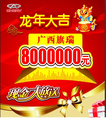 對于很多購車者來說,他們都有著歲末購車因車源緊張而優(yōu)惠減少的傳統(tǒng)印象。記者從奇瑞汽車獲悉,此兩次車展廣西旗瑞最后放假:8000000萬現(xiàn)金大放送,更有不少極具誘惑力的大禮包。掀起年末最后一輪優(yōu)惠狂潮!想在春節(jié)前買車的車友們就趕快報名吧!