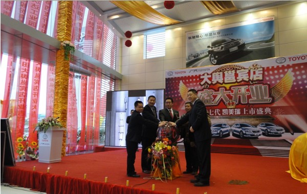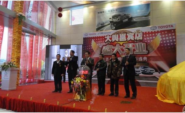 2012年1月5日,位于南寧市秀廂大道金川路2號(hào)的廣汽豐田大輿邕賓4S店盛大開(kāi)業(yè),作為2012年南寧市第一家開(kāi)業(yè)的汽車4S店,廣汽豐田大輿邕賓4S店無(wú)疑已經(jīng)在新年伊始贏得了市場(chǎng)的好彩頭。在新店開(kāi)業(yè)的當(dāng)天,來(lái)自于豐田旗下最先進(jìn)的G-BOOK智能副駕系統(tǒng)的第七代凱美瑞同時(shí)上市,又為廣汽豐田大輿邕賓店贏得了滿堂彩,開(kāi)業(yè)活動(dòng)雙喜臨門(mén)。而且此次活動(dòng)4s店邀請(qǐng)了嘉賓領(lǐng)導(dǎo)以及各大媒體朋友和廣大車主朋友,一起共同見(jiàn)證這激動(dòng)人心的時(shí)刻。