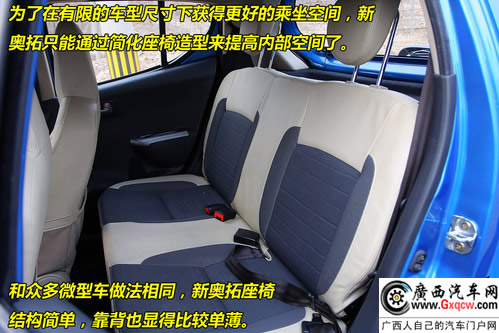后排座椅放倒方面,斯帕可表現(xiàn)勝出一籌,它可以采用4/6分開放倒,靈活性更勝一籌;而奧拓不光后排座椅只能整排放倒,而且操作的拉手還在座椅兩側(cè),一個人要想操作,幾乎是一件不可能完成的任務(wù)。