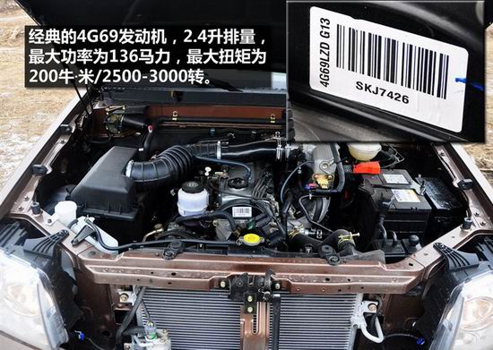 威虎F1首先推出了一款柴油車型和一款汽油車型。汽油車型搭載的是通吃國內(nèi)很多車型的4G69發(fā)動(dòng)機(jī),很經(jīng)典,2.4L排量符合這個(gè)車的需求,最大功率為136馬力,最大扭矩為200!っ/2500-3000轉(zhuǎn)。推動(dòng)這臺(tái)1.6噸的車身還是綽綽有余的,空載狀態(tài)下不費(fèi)勁,但是對(duì)于這款經(jīng)典的老三菱發(fā)動(dòng)機(jī)來說,低速扭矩不是強(qiáng)項(xiàng),想必在拉貨的時(shí)候可能會(huì)吃力。駕駛感受與同級(jí)別的SUV和皮卡大同小異。