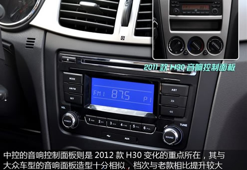 相比外觀而言,2012款H30內(nèi)飾的變化則要比外觀變化大許多,雖然整體樣式依舊,但細節(jié)上的變動卻能帶來不一樣的使用體驗感受。