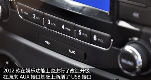 2012款中控部分的變化重點應(yīng)該就是這款音響控制面板的變化了,老款的控制面板較為簡單,缺乏檔次,而新款的音響板面則明顯要高檔許多,造型與大眾車型的款式十分相似,無論是按鍵精致度還是用料方面都比老款要提升不少。尊雅型上新增加了USB接口,頂配的電子導(dǎo)航版車型更配備了倒車影像功能,功能豐富了不少。