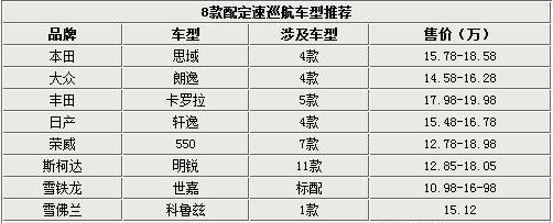 本次推薦的這8款帶有定速巡航功能的車型,其售價(jià)均在10-20萬(wàn)元之間,其中既包括了像大眾朗逸以及雪佛蘭科魯茲這樣的熱銷車型,也有如第九代思域這般的上市新車,下面就讓我們對(duì)這些車型做進(jìn)一步的了解。