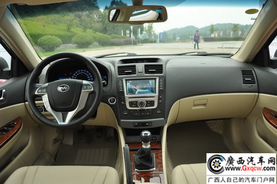 內(nèi)飾方面,比亞迪G6采用了標(biāo)準(zhǔn)的上深下淺的內(nèi)飾配色,在變速箱周圍還采用了同級(jí)別車型慣用的木紋裝飾貼片。其方向盤的造型十分前衛(wèi),位于6點(diǎn)位置的銀色設(shè)計(jì)充滿了未來感。除此之外,比亞迪G6儀表盤的造型也十分新穎,采用了一個(gè)大圓搭配兩個(gè)方形的設(shè)計(jì),其藍(lán)色字體刻度清晰,可辨識(shí)度高,同時(shí)也充滿了運(yùn)動(dòng)感。