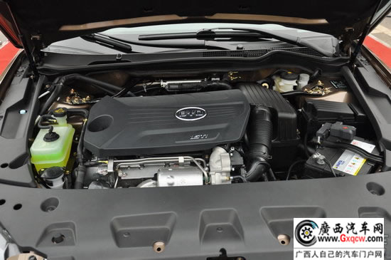 打開發(fā)動(dòng)機(jī)蓋,你會(huì)驚訝的發(fā)現(xiàn),比亞迪G6的發(fā)動(dòng)機(jī)蓋設(shè)計(jì)的十分平整精致,在密封性高度完整的擋板下方藏匿的是一臺(tái)1.5L汽油直噴渦輪增壓發(fā)動(dòng)機(jī),最大功率113kW,最大扭矩240Nm。