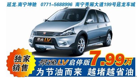 為節(jié)油而來,越堵越省油的景逸LV啟停版由南寧坤馳獨(dú)家代理銷售,僅售7.99萬,數(shù)量有限,想要買車的朋友請(qǐng)抓緊了。