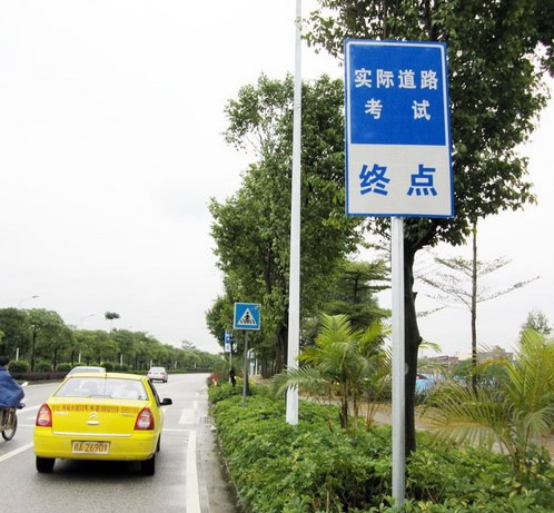 在水上派出所附近記者看到,路邊新立一塊藍(lán)底白字、看起來非常醒目的警示牌,上面寫著:進(jìn)入考試路段,請注意安全。并標(biāo)明考試路段限速40公里/小時,提醒過路車輛小心避讓考試車輛,也提醒考生們做好準(zhǔn)備。