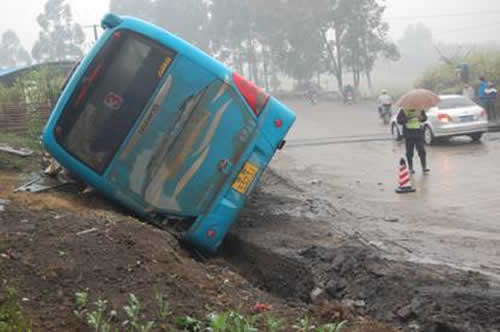 當(dāng)天天還未亮,來賓市交警二大隊遷江中隊接到110指令:在來賓至遷江二級路大村鐵道口有一輛大客車側(cè)翻,有人受傷,請出警處理。接警后,交通民警迅速趕赴現(xiàn)場,只見一輛懸掛桂B(yǎng)332XX號大客車沖出路面?zhèn)确诠纷髠?cè),交通民警一面與趕到的遷江鎮(zhèn)中心衛(wèi)生院的醫(yī)務(wù)人員把傷員抬上救護車送往遷江鎮(zhèn)中心衛(wèi)生院搶救,一面向大隊領(lǐng)導(dǎo)匯報交通事故情況。有關(guān)部門領(lǐng)導(dǎo)高度重視,先后趕赴現(xiàn)場指揮搶救工作,并指示要想盡一切辦法搶救傷員,同時對傷員等進行安慰。