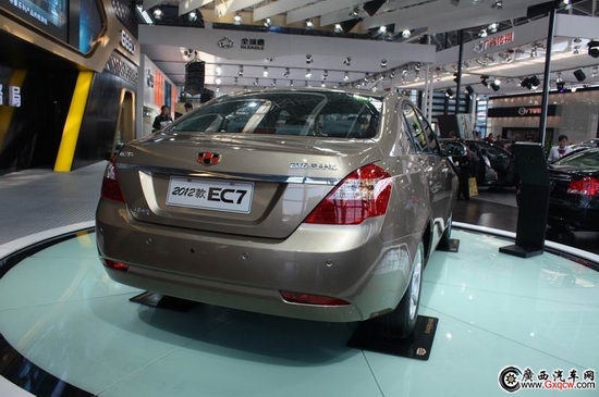 EC7兩個晶瑩剔透的大燈和深色梯形進(jìn)氣格柵的組合,展示出帝豪EC7的大氣與舒展。長度超過4.6米的EC7在車門側(cè)面鑲嵌著上下兩條前低后高的腰線,配合著前低后高的楔形車身,讓這EC7頗有些貴族氣質(zhì);EC7的尾燈設(shè)計手法有些神似德系豪車,紅白相間的LED尾燈和飽滿的后杠讓EC7的背影顯得大氣、舒展。