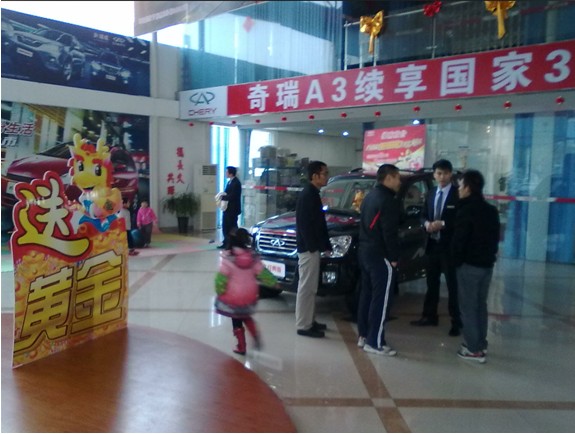 主營(yíng)業(yè)務(wù):銷(xiāo)售車(chē)型:奇瑞艾瑞澤7、瑞虎、A3、風(fēng)云2、E5、A1、旗云5、旗云1、旗云2、旗云3、QQ3、及奇瑞汽車(chē)全系售后服務(wù)、零配件供應(yīng)、信息反饋。