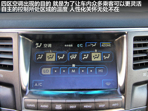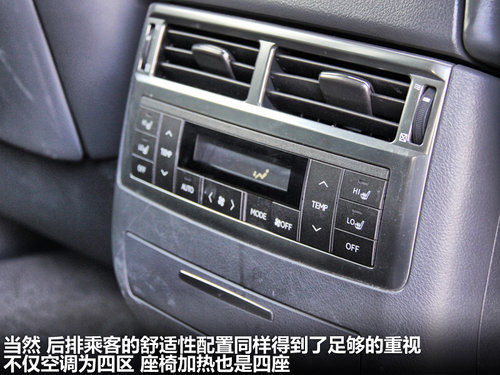 四區(qū)空調(diào)和四座椅加熱,同樣是雷克薩斯LX570人性化的高配置表現(xiàn)。雖然目前這兩項配置已經(jīng)不算是什么奢華的配置,但是當(dāng)LX570配備了這兩項配置的時候,其他車型恐怕還并沒有這么前瞻。