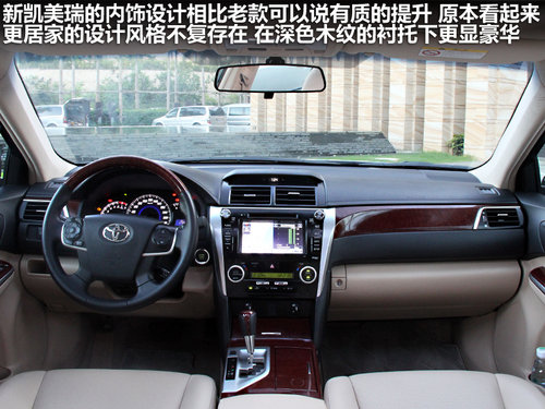 新凱美瑞的內(nèi)飾設(shè)計更加豪華,在配置方面有電動調(diào)節(jié)真皮座椅,以及中控臺彩色屏幕(沒有導航),藍牙車載電話和氙氣大燈都有裝配,和雅閣配置不相上下。
