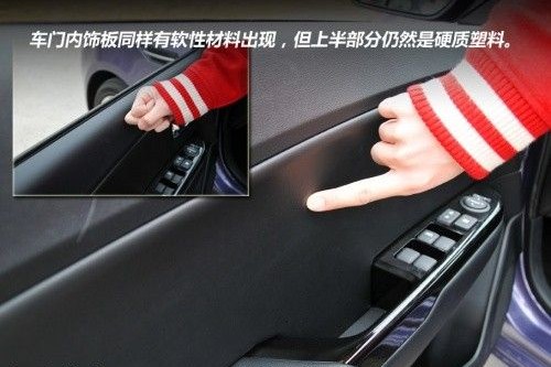 車門內(nèi)面板的用料同樣出現(xiàn)了軟性材料,金屬的車門內(nèi)把手質(zhì)感上乘。