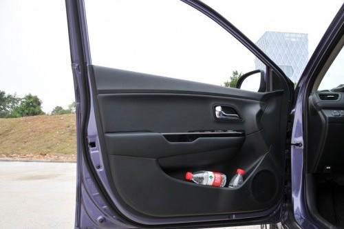 K2的前車門內(nèi)側(cè)設(shè)有儲(chǔ)物槽,但比較狹小,僅能容納一瓶礦泉水,而后門則干脆沒有設(shè)置儲(chǔ)物槽。看來(lái)K2的后排乘客在儲(chǔ)物空間的使用上顯得有些捉襟見肘,而前排相對(duì)要好很多。