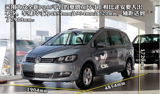 從這個(gè)角度看夏朗和途安頗有幾分神似,不過(guò)采用大眾全新PQ46平臺(tái)的夏朗在尺寸上相比途安要大出不少,車身尺寸為4854mm/1904mm/1720mm,軸距達(dá)到了2919mm。在內(nèi)部空間上無(wú)疑會(huì)有更好的表現(xiàn)。