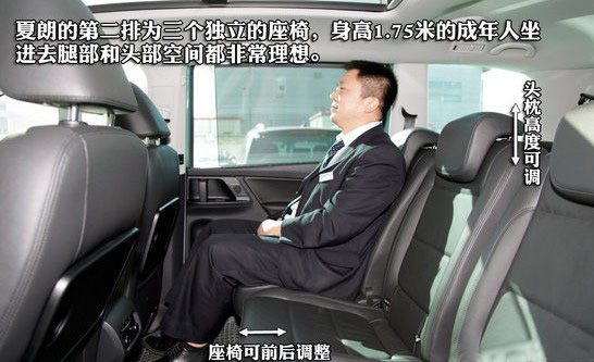 夏朗全部裝配黑色的真皮坐椅,駕駛席座椅僅靠背角度和腰部支撐功能為電動(dòng)調(diào)節(jié),座椅前后和高度為手動(dòng)調(diào)節(jié)。第二排為三個(gè)獨(dú)立的座椅,可同時(shí)乘坐3人,另外還有小桌板可供使用,享受航空般的待遇。第三排座椅可以全部放倒,當(dāng)打開后為兩個(gè)獨(dú)立座椅,夏朗對(duì)第三排乘客的照顧也非常周到,除了兩側(cè)專用的儲(chǔ)物格外,頭頂還有獨(dú)立的空調(diào)出風(fēng)口,另外第三排乘客的腿部空間也不錯(cuò),成年人坐進(jìn)去腿部有一拳的余量。