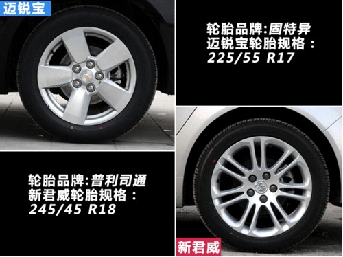 在輪胎的應(yīng)用方面,邁銳寶的尺寸數(shù)據(jù)要稍小一些,225/55 R17的輪胎數(shù)據(jù)和新君威245/45 R18相比,從輪轂的直徑和胎面的寬度上都整整小了一圈,而使用的輪胎品牌上,邁銳寶使用了固特異,新君威則是普利司通。當(dāng)然我們不能僅僅從輪胎廠家來(lái)判斷誰(shuí)的成本更高,畢竟不同的型號(hào)和系列也決定了他們之間的差價(jià)。但從輪胎基本上的數(shù)據(jù)來(lái)看,新君威在這一項(xiàng)上無(wú)疑更加厚道。