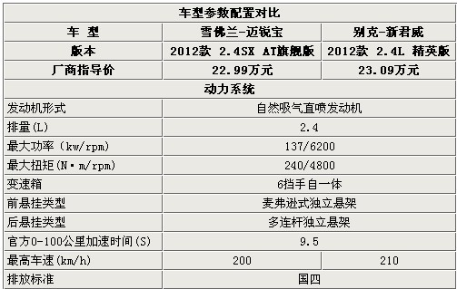 在沒有看到上圖之前我們可能還會揣測,他們應用一樣的發(fā)動機會不會調(diào)校不同?帶來不同的駕駛感受呢?但經(jīng)過圖表的說明,可以肯定的是,邁銳寶2.4L SIDI發(fā)動機和新君威2.4L SIDI發(fā)動機在動力參數(shù)上完全一致,而配合最新S6六速手自一體變速箱之后,他們的輸出曲線應該也是一致的。只有在最高車速一項,相差10Km/h。
