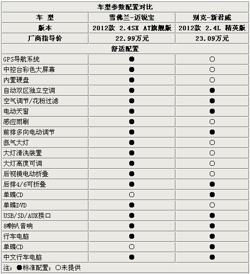 也許我們在前面看到了太多的一致,看到這里大家也許會覺得他們兩個簡直就是一母雙生嘛,但通過舒適性配置的對比我們可以重新來看這對兄弟了,在舒適性配置上,邁銳寶旗艦型全面超越了新君威精英型,雖然只有兩千元的售價差別,但從配置價值上看邁銳寶顯然更合算。
