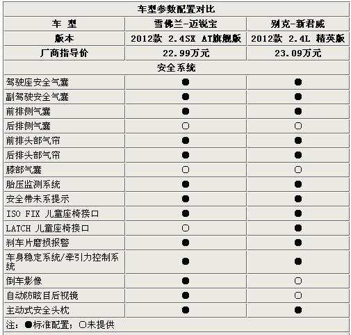 我們在上面的舒適性配置看到了新君威和邁銳寶的差距,而在安全行配置方面,他們之間的差別小了一些,但還是得益于邁銳寶的中控液晶大屏幕,在倒車影像上,新君威再失一籌。而自動防眩目后視鏡這樣的配置現(xiàn)在也很流行,手動防眩目自然會不太方便。