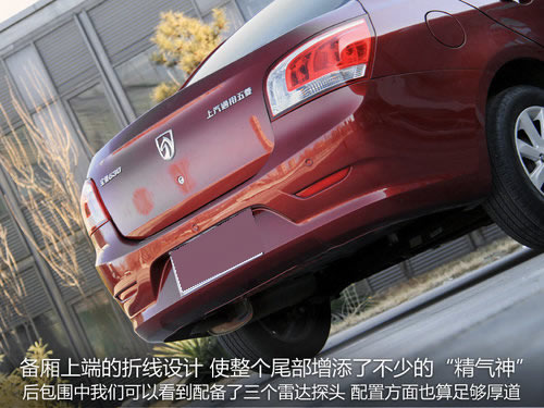 15寸鋁合金輪轂、四輪盤剎制動系統(tǒng)都可以看出寶駿這個年輕品牌帶給消費者的誠意,而在對這點上的稱贊相信許多人會與我有著一樣的共識。最后在外觀方面我們說下尾部的設(shè)計,尾箱上端的折線增添了不少的精氣神,相比車頭更加富有活力,其配備的三個雷達(dá)探頭,對于泊車安全也起到了有力保障,同時該配備在此價位車型中出現(xiàn)也算是十分厚道的了。