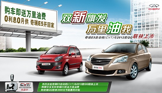 魅力初春,旗云品牌“雙‘新’旗發(fā) 萬里‘油’我”大型促銷活動(dòng),即將在全國范圍內(nèi)盛裝開啟。據(jù)悉,此次活動(dòng)涵蓋旗云1、旗云2、旗云3、奇瑞QQ及奇瑞E5全系車型,更有“購車即送萬里油”、“0利息 0月供 奇瑞E5開回家”等多重好禮,為全國廣大消費(fèi)者送去了十足的優(yōu)惠。同時(shí),借勢此次活動(dòng),旗云亦將2012款奇瑞QQ、奇瑞E5自動(dòng)檔兩款車型分別在南部市場推廣的更加深入。
