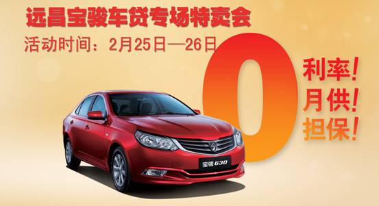 2月25日-26日遠(yuǎn)昌寶駿車貸專場特賣會幫您統(tǒng)統(tǒng)解決這些問題,0月供、0利率、0擔(dān)保,讓您的幸福生活不需等待!