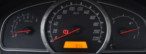 儀表盤也很清晰可見,轉速、時速和油量表從左到右排列。