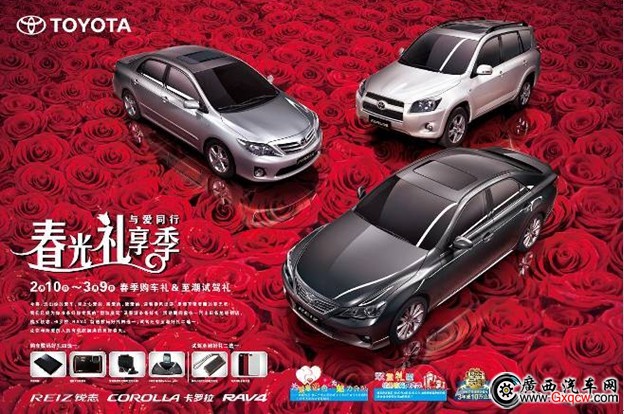 促銷活動:3月1日-3月9日活動期間,購買銳志、RAV4、卡羅拉三款車型就可獲得平板電腦、愛國者三防相機、智駕精靈車載版、jbl音響四選一,試駕可獲贈至潮好禮:數(shù)碼小助手(太陽能充電池)、時尚炫彩手機外殼等;